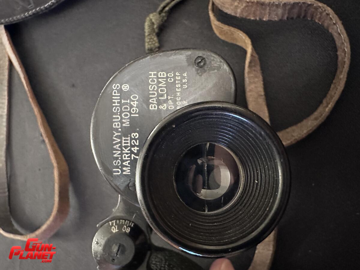 Se trata de unos prismáticos militares Bausch & Lomb 6x30 de la época de la Segunda Guerra Mundial, con marcas de ajuste ocular individuales y, posiblemente, de propiedad militar estadounidense oculta o desgastada. Estos binoculares se fabricaron para el Ejército de EE. UU. y la Marina de EE. UU. durante el conflicto.