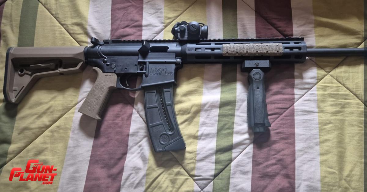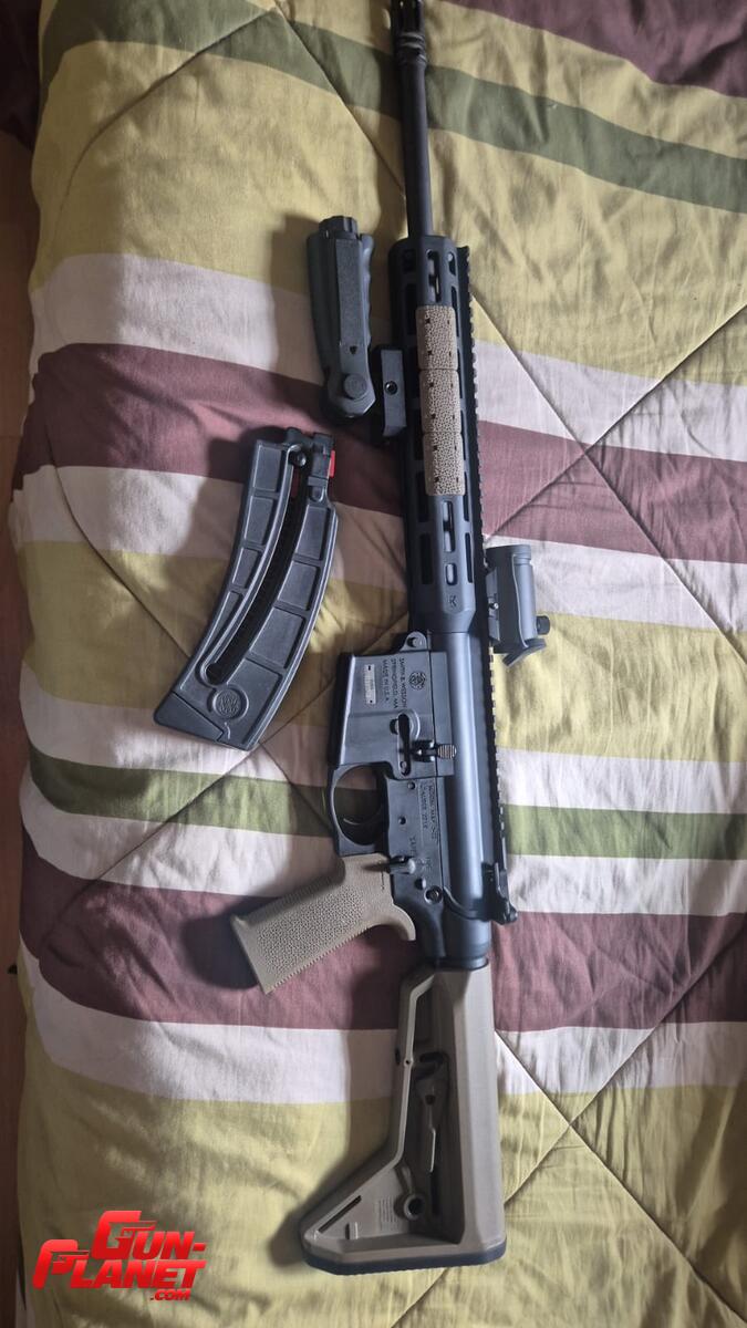 Carabina Semiautomática S&Wesson M&P MP 15/22, solo probada. Mira de punto genérica, dos cargadores, manual, caja. Dólar cabeza grande 1100.