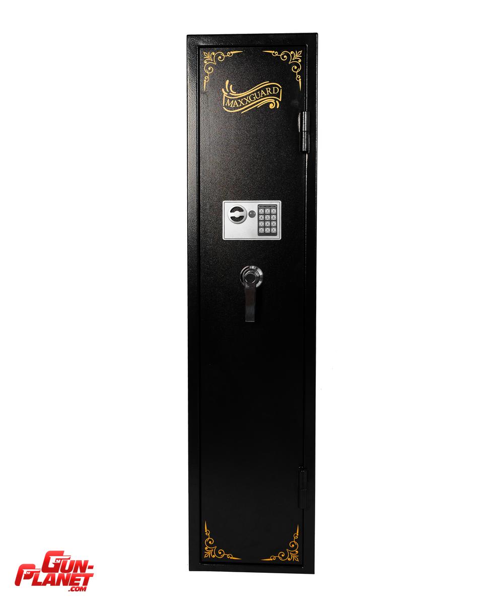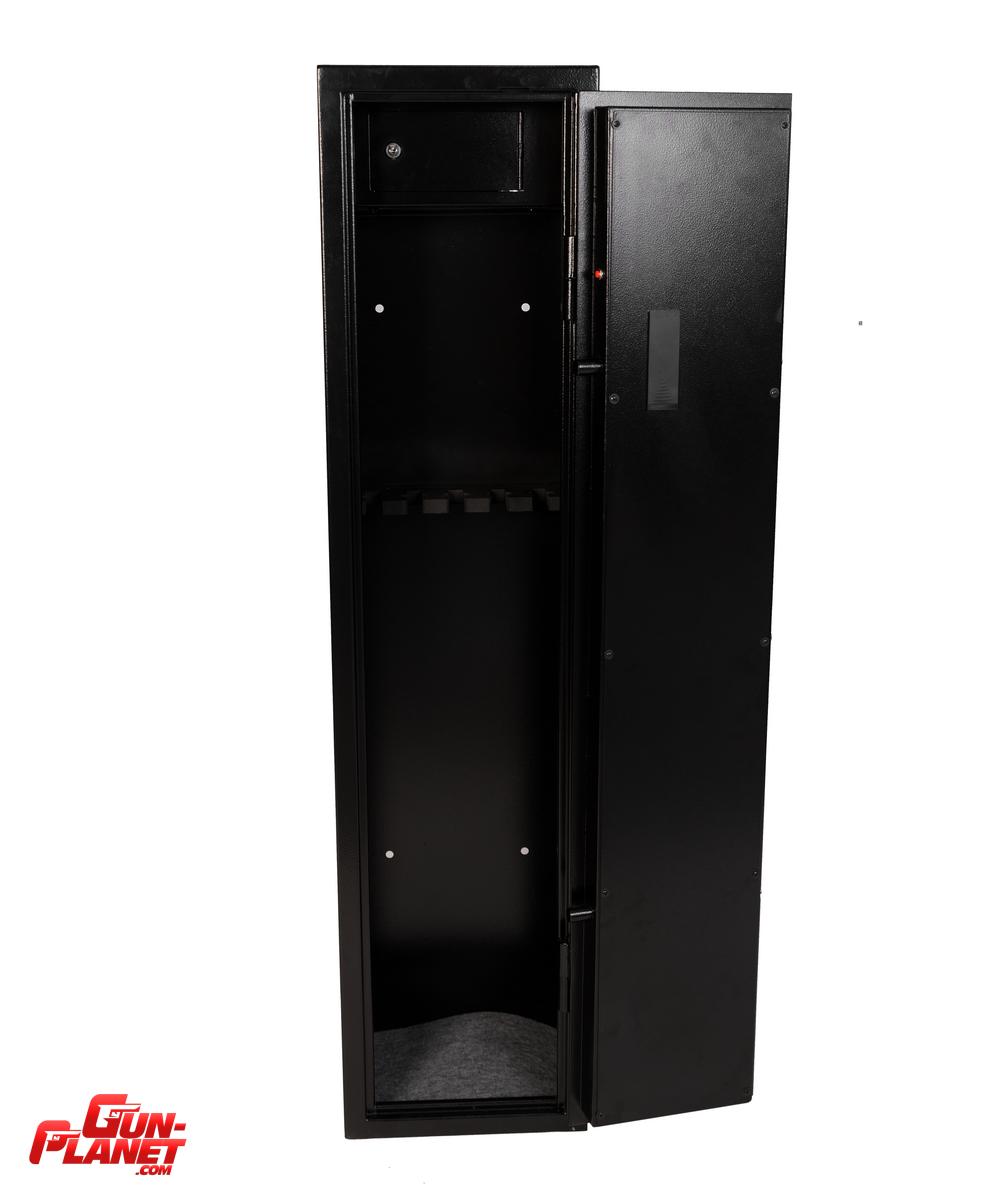 Este armero tiene capacidad máxima de 5 armas largas, incorporando además un compartimento adicional para municiones.