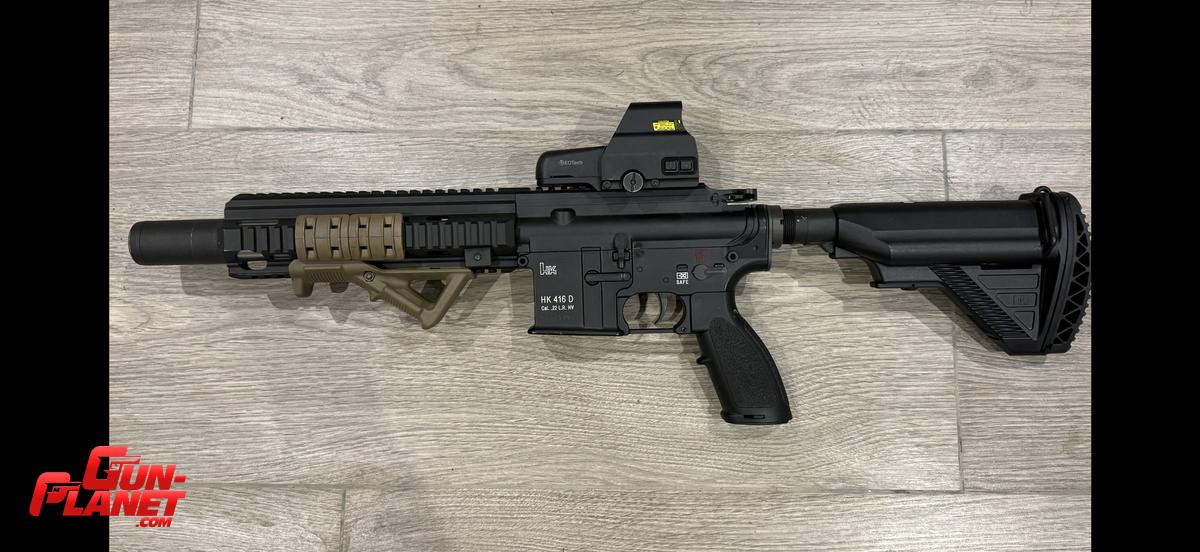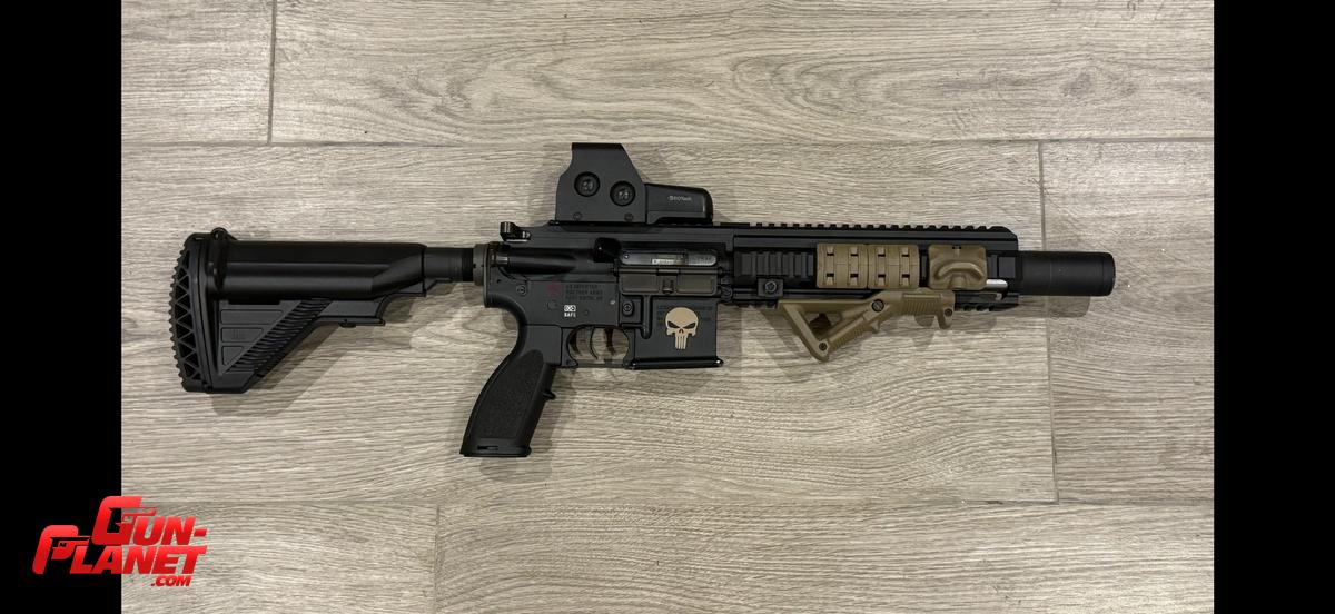 Se entrega con el soporte MAGPUL original, cobertores de Rieles Picatiny, y una pieza UNICA hecha por Armeros, que cambia el look de la punta del cano . Comparar con la original, NO existe una HK con esta pieza . OPCIONAL MIRA EOTECH ORIGINAL 556