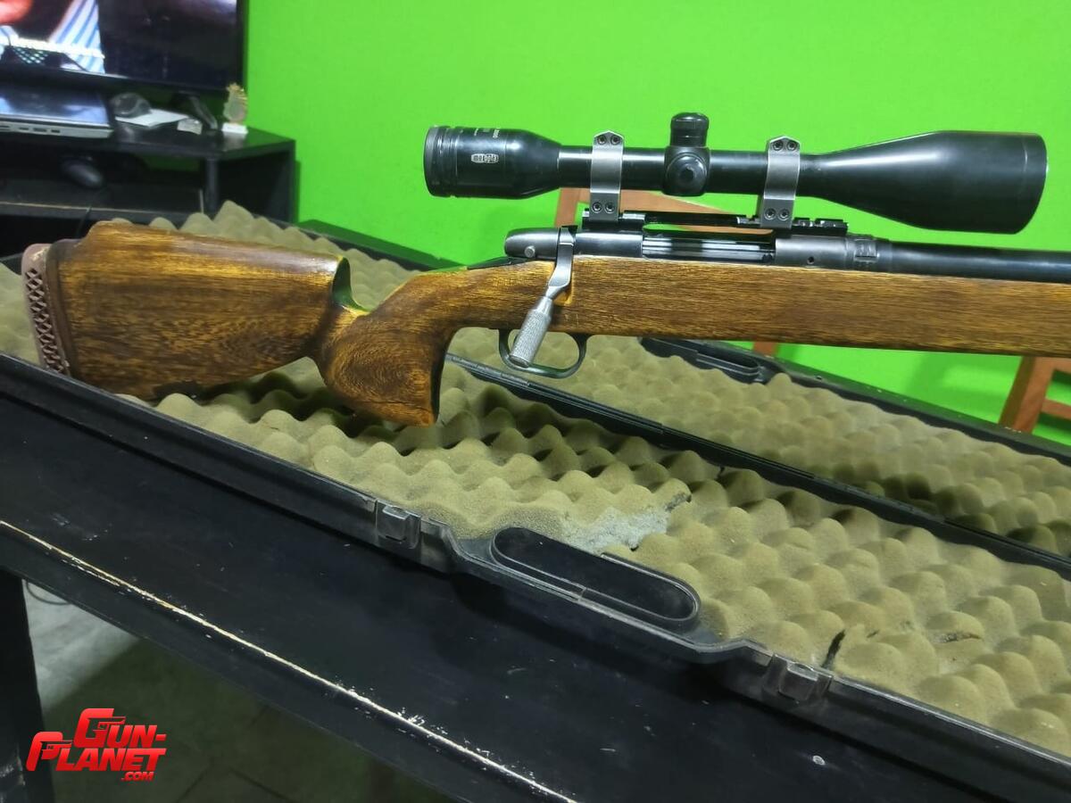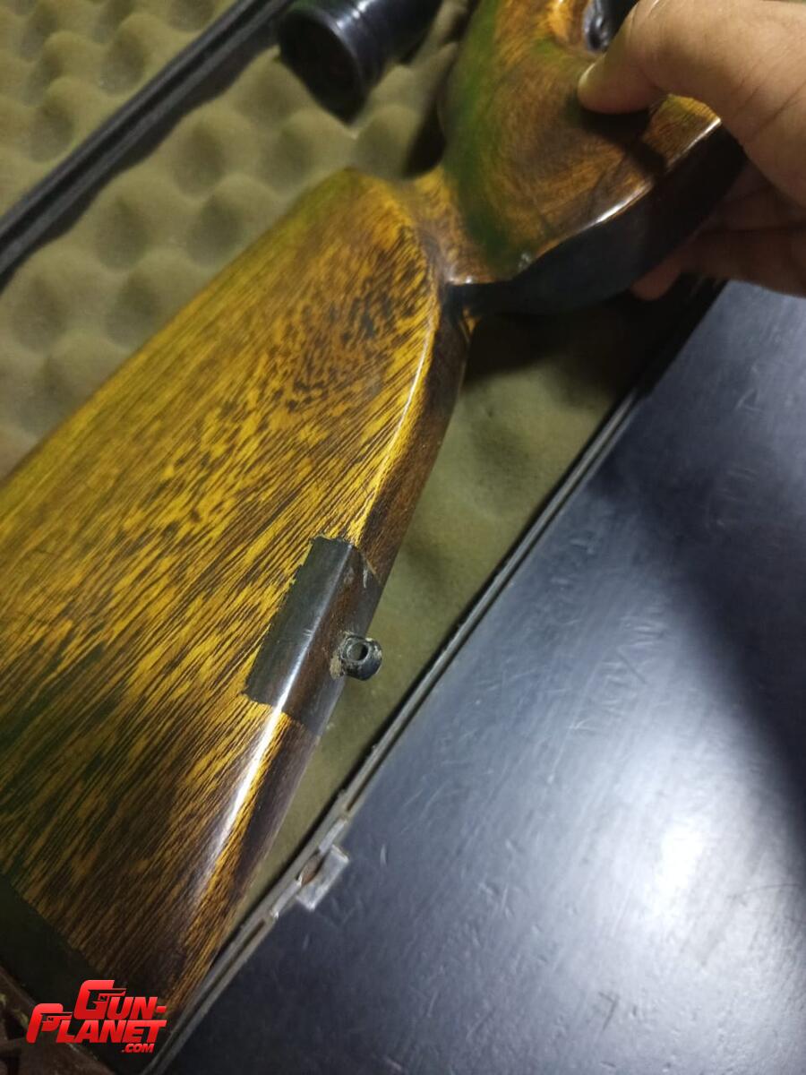 Marlin xl7 se le puso caño bull barrel, rosca, culata original + actual, detalle en el pomo de cerrojo, encastres de guayibira en la culata para los tornillos, bipode y caja de transporte...