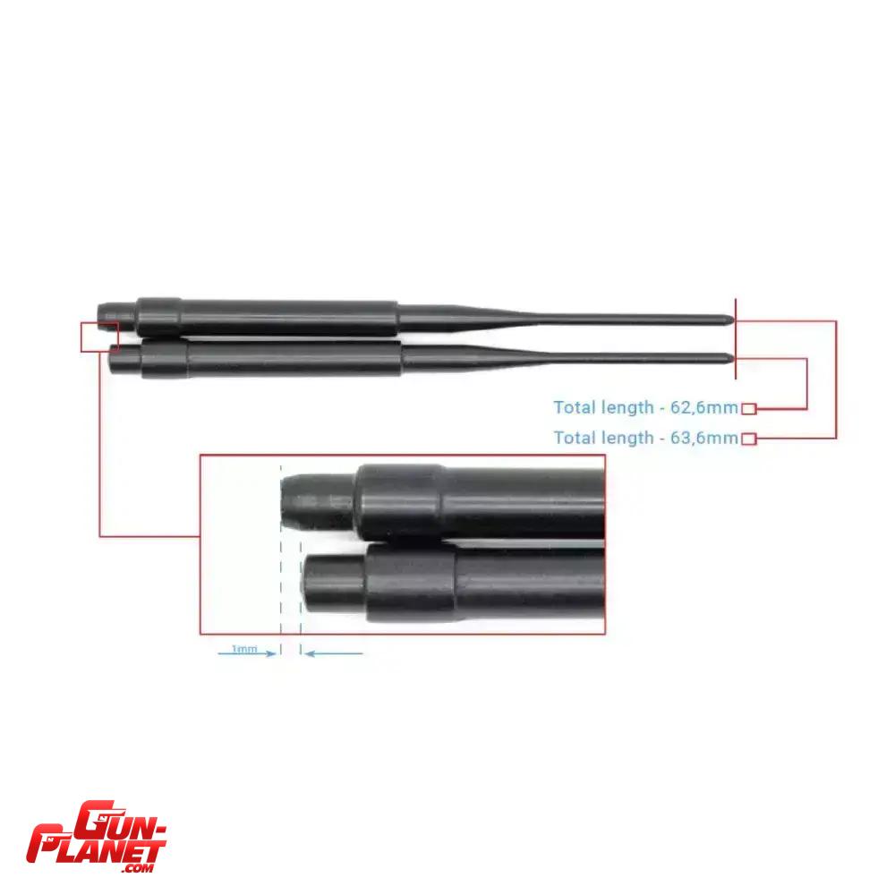 El percutor extendido resuelve los fallos de encendido causados por cebadores principales débiles o duros. Longitud total: 2502" (64 mm) Color: Negro Especificaciones: • ¡Fabricado en acero, con tratamiento térmico para el mejor rendimiento y calidad!