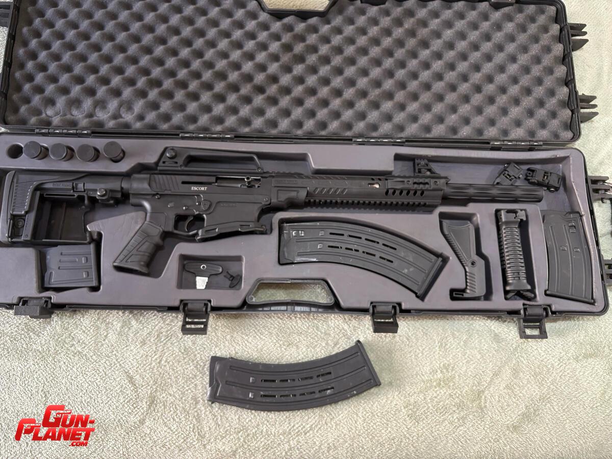 La Hatsan Escort SDX12-TS es una escopeta semiautomática táctica calibre 12/76 (Magnum 3”), con caño de 20”, 3 cargadores metálicos (2, 5 y 10 tiros), 5 chokes intercambiables, culata telescópica con alojamiento para cargador, rieles Picatinny y miras rebatibles. Una plataforma moderna, potente y versátil para tiro deportivo, defensa y entrenamiento táctico.
