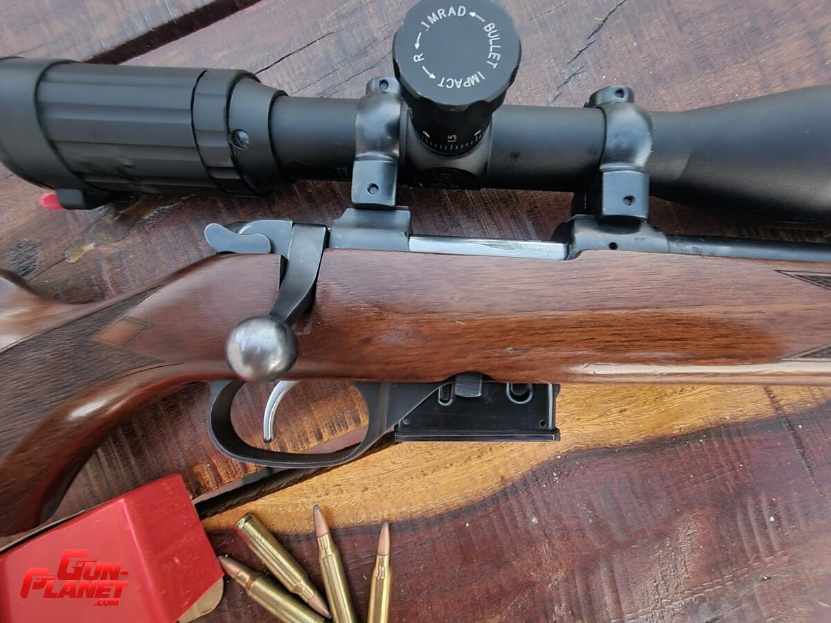 Calibre .223 Rem. Largo del cañón 650 mm. Peso con el cargador vacío 3,3 kg. Capacidad 5 tiros. Culata de nogal.Uso en poligono, estado general muy bueno. Se vende sin la mira y sin el bipode, Se incluyen las anillas de acero de 30mm especificas para esta arma.