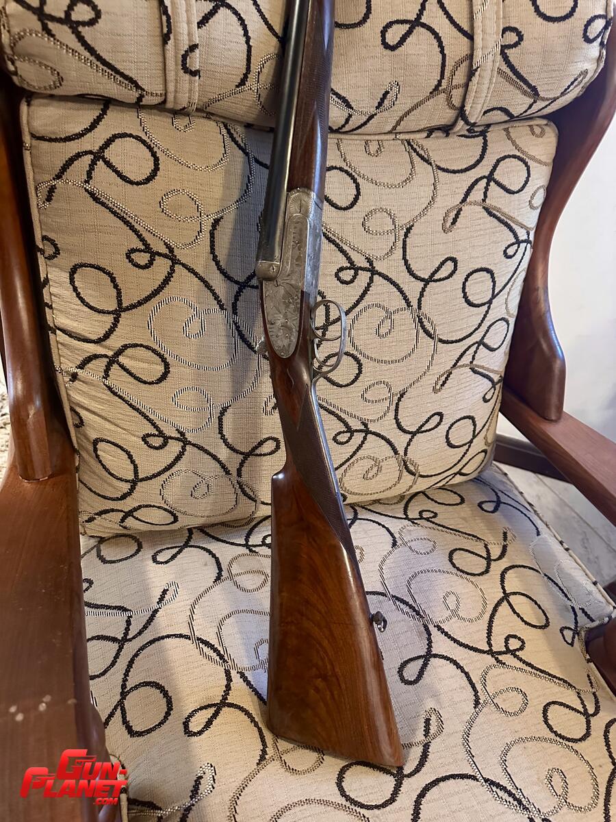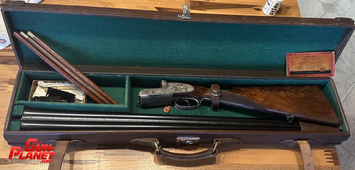 Distinguida escopeta Víctor Sarrasqueta de lujo mod 213E indicadores de disparo en oro 24 , extractores automáticos, maderas de nogal seleccionado alto grado, imágenes de caza hechas a mano