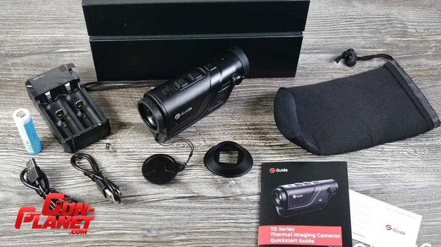 El Guide TD210 es un monocular térmico pequeño, ergonómico y de gama básica. El zoom empieza en 1,8 x, pero también cuenta con un zoom digital de cuatro x. Ofrece 5 modos de configuracion de color. Incorpora un sensor y una pantalla de alta calidad. El campo de visión es de aproximadamente 300 metros a 100 metros y puede detectar objetos a 400 metros de distancia. La batería proporciona al dispositivo ocho horas de duración. Cuenta con un botón especial junto al ocular que permite ajustar la dioptría. Cuenta con wifi para enviar video en tiempo real a tu smartphone, pero no permite grabar videos ni tomar fotos. El objetivo de 10 milímetros, el sensor de 256×190 píxeles y, especialmente, la pantalla de 1280×960 píxeles con batería intercambiable.