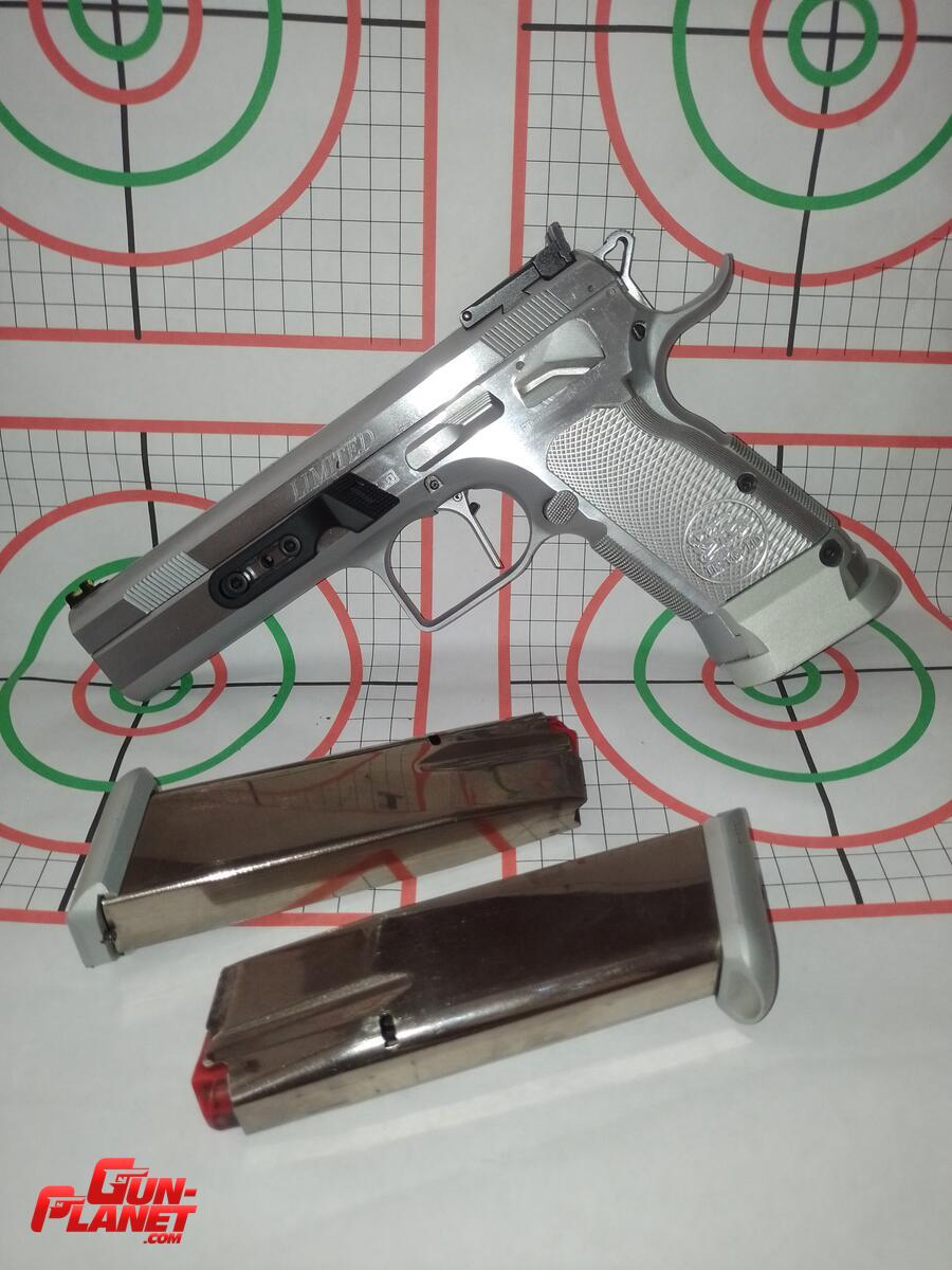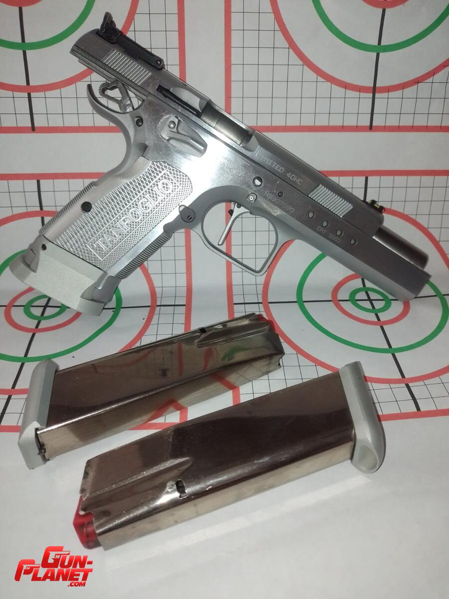 Pistola calibre 40 Limited Custom con accesorios, Gatillo recto, cachas de Aluminio, guion de fibra, apoyo para pulgar, seguro extendido ambidiestro, aguja percutora y una extractora nuevas, usada solo en pedana y con munición de recarga