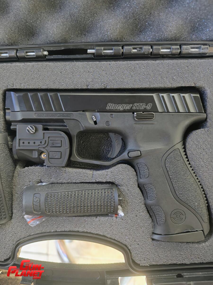 Vendo stoeger en perfecto estado con sus 2 cargadores, linterna con láser verde, funda y porta cargador doble tal cual en las imágenes