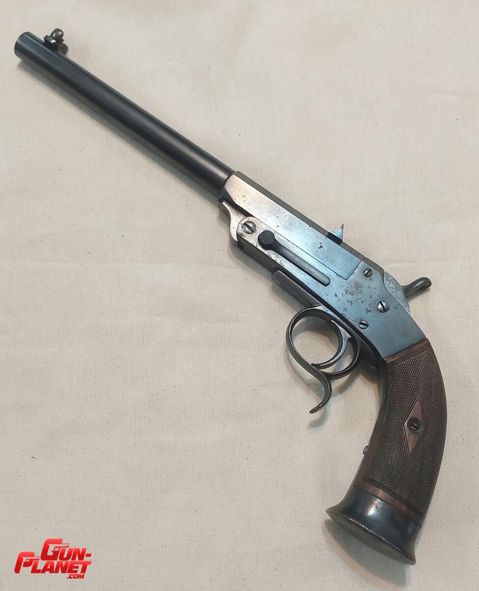 Excepcional pieza para coleccionar, pistola monotiro calibre 22 corto, de origen belga en optimas condiciones de funcionamiento.