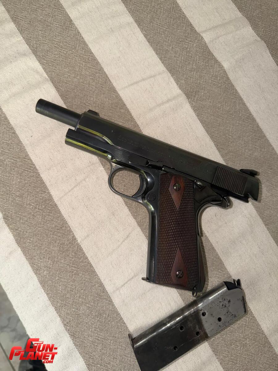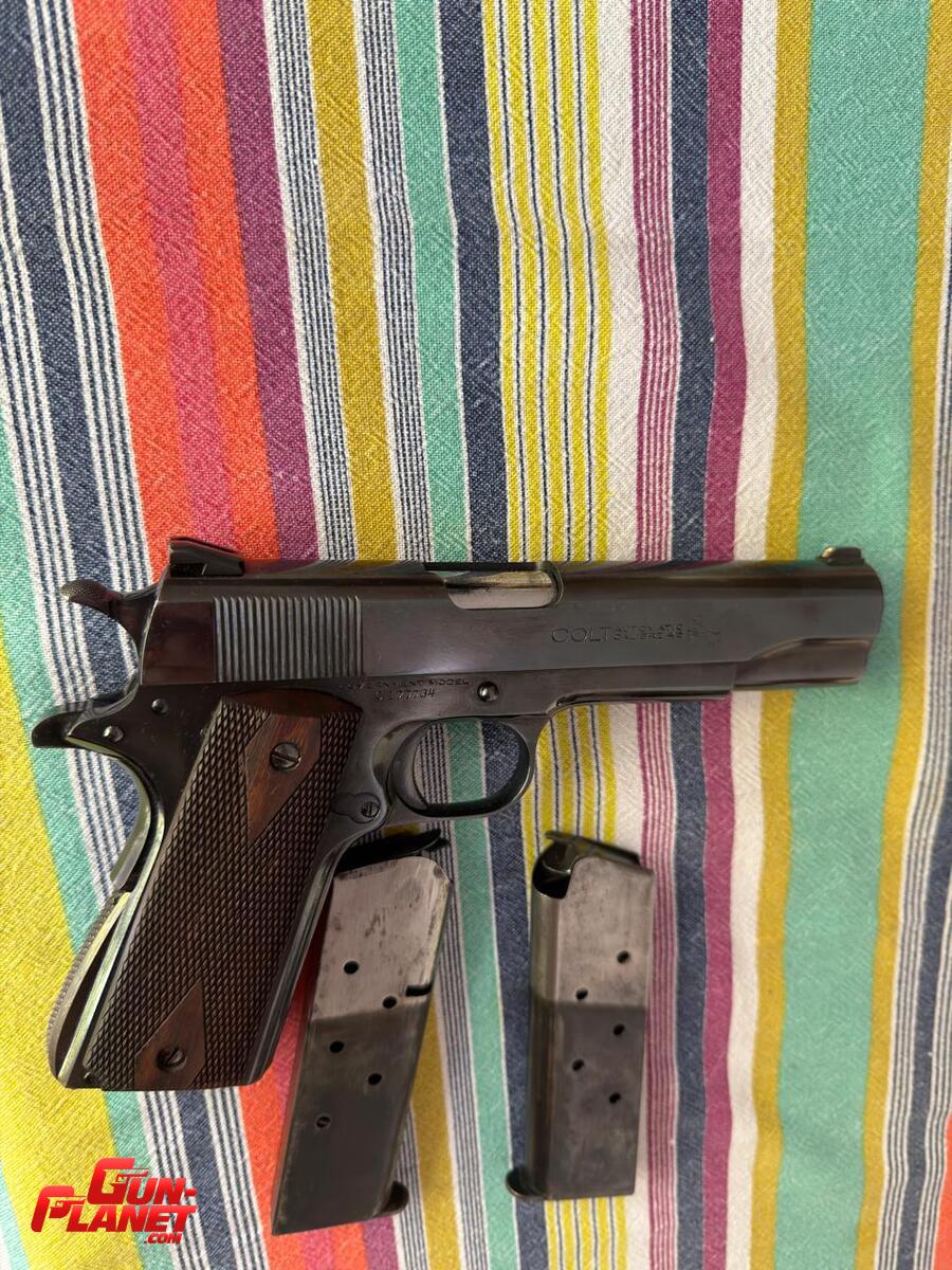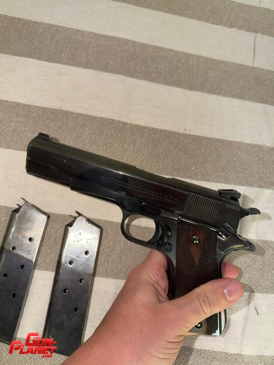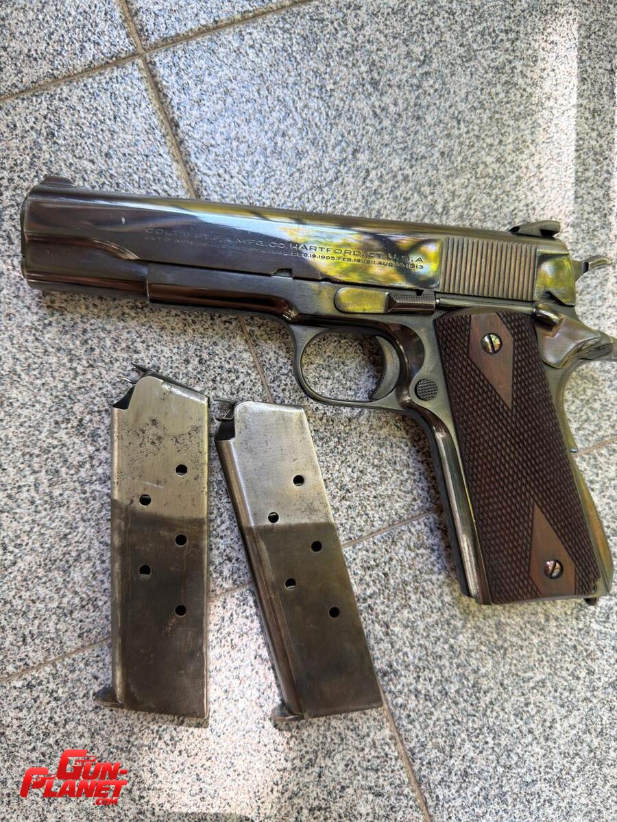 Buenas noches Sr sin desmerecer la pistola las miras y las cachas no son originales y el brillo del pulido de la corredera y detalles de algunas letras en ambos lados como asi tambien la nitidez del caballito son signos de repavonado. Atte.-
