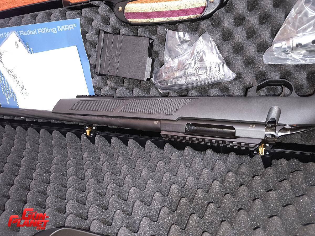 Cañón de 24 pulgadas semi bull, cañon roscado, picatinny, estuche. Peso 4.5 kg .