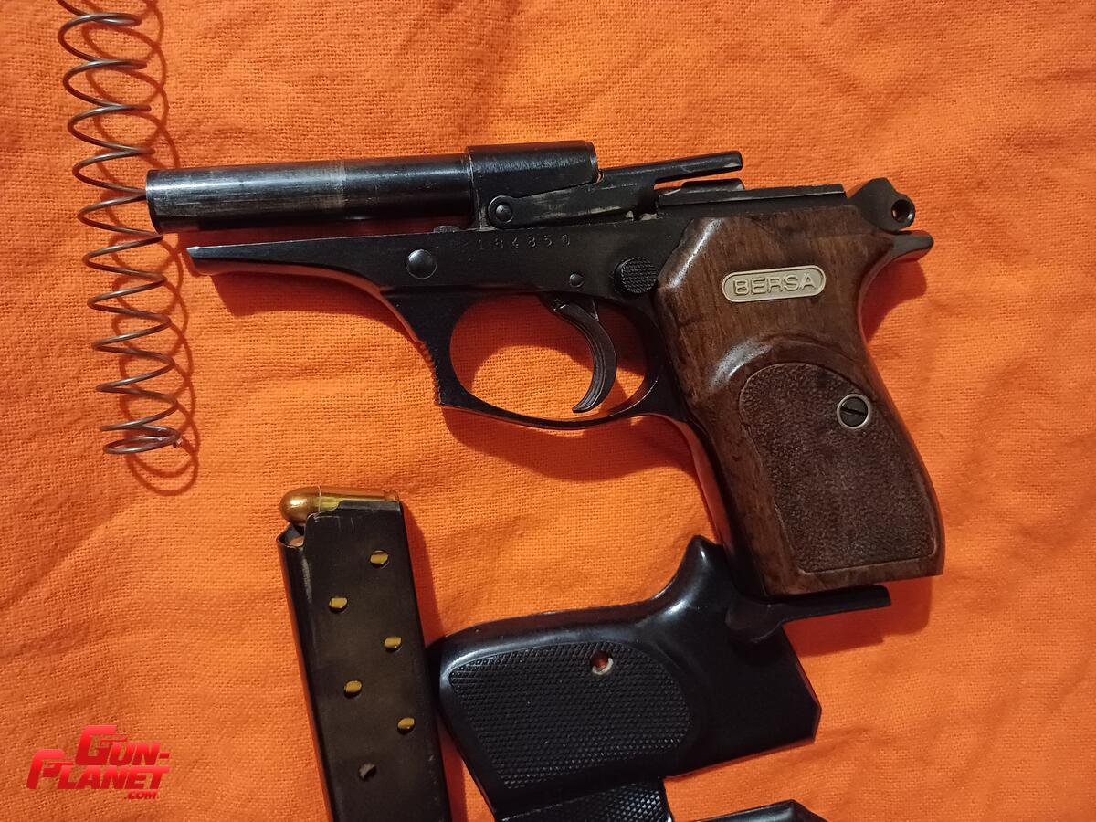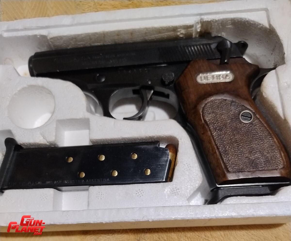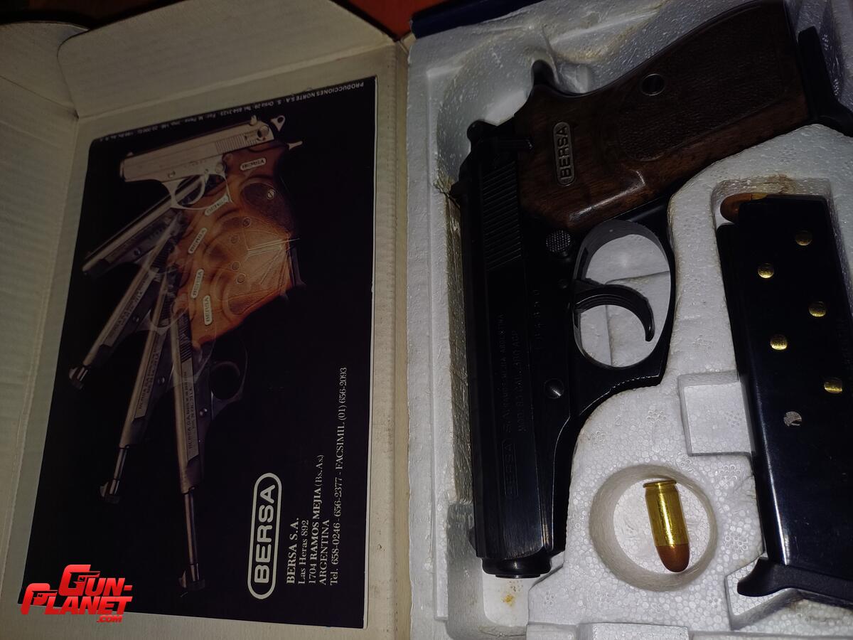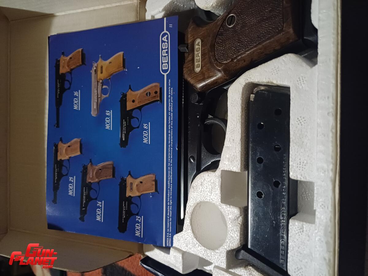 BERSA modelo 83 toda de acero pavon caja y manual original dos cargadores como viene de fabrica un solo raspon como se aprecia en la foto del lado derecho en la punta de la barra de transferencia