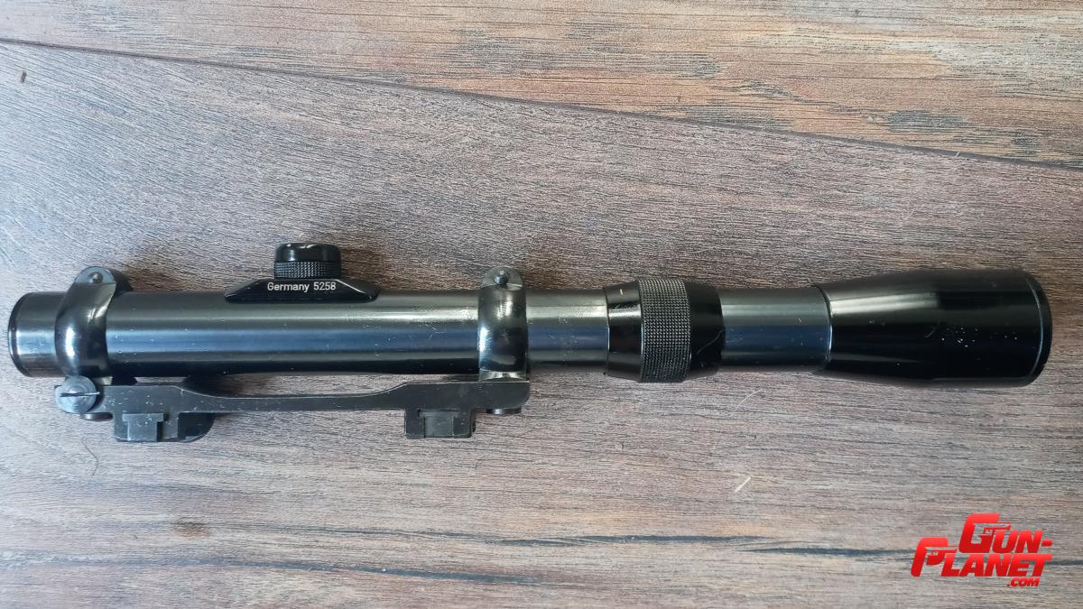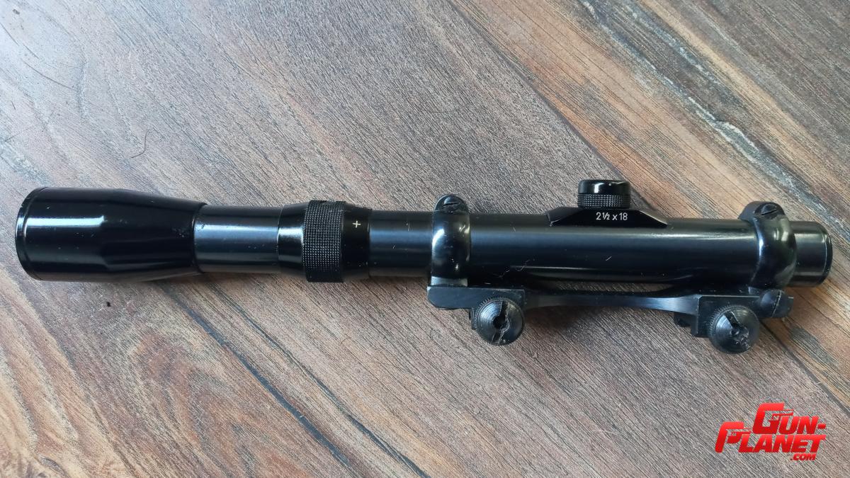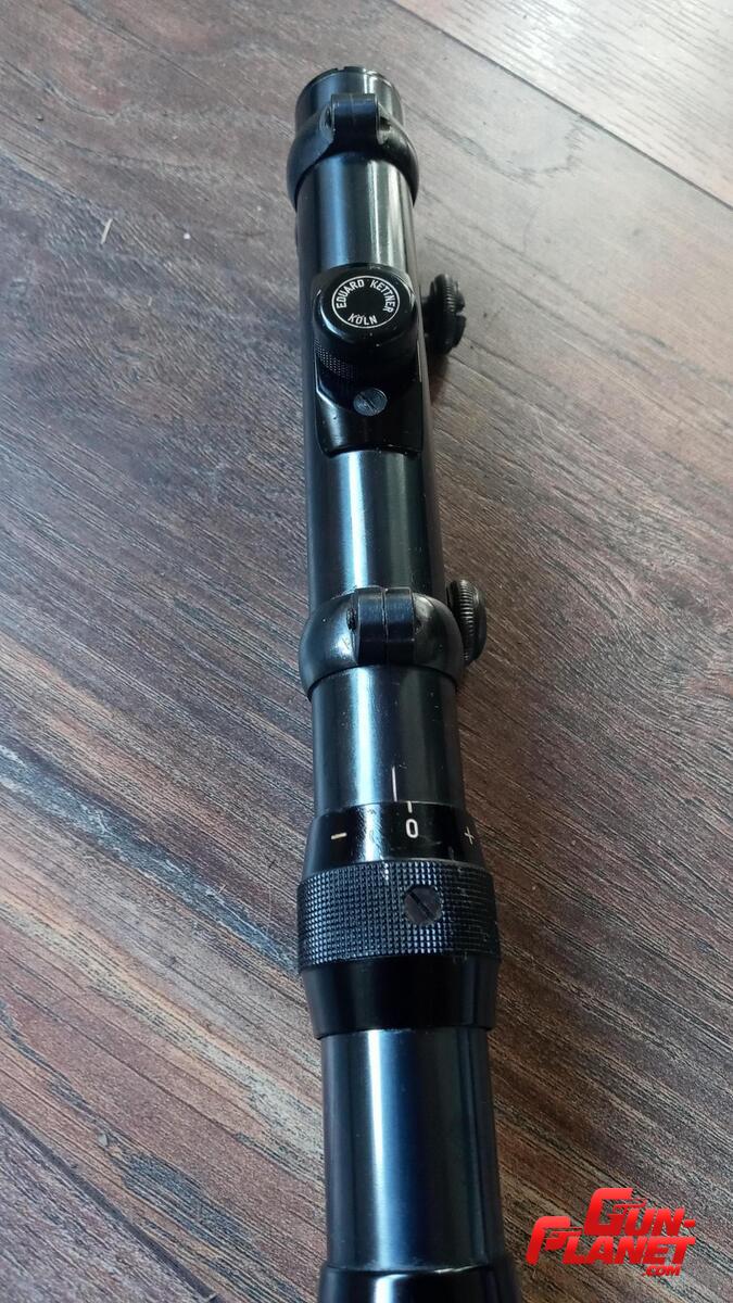 KETTNER (schmidt bender) 2 1/2 x 18 reticulo 1 no autocentrante , torreta de ajuste de altura, y bello montaje pedestal ajustable en lateralidad para riel 11mm, posee ajuste de dioptrias. Todo acero, exelentisimo estado. Ideal para .22 de epoca.