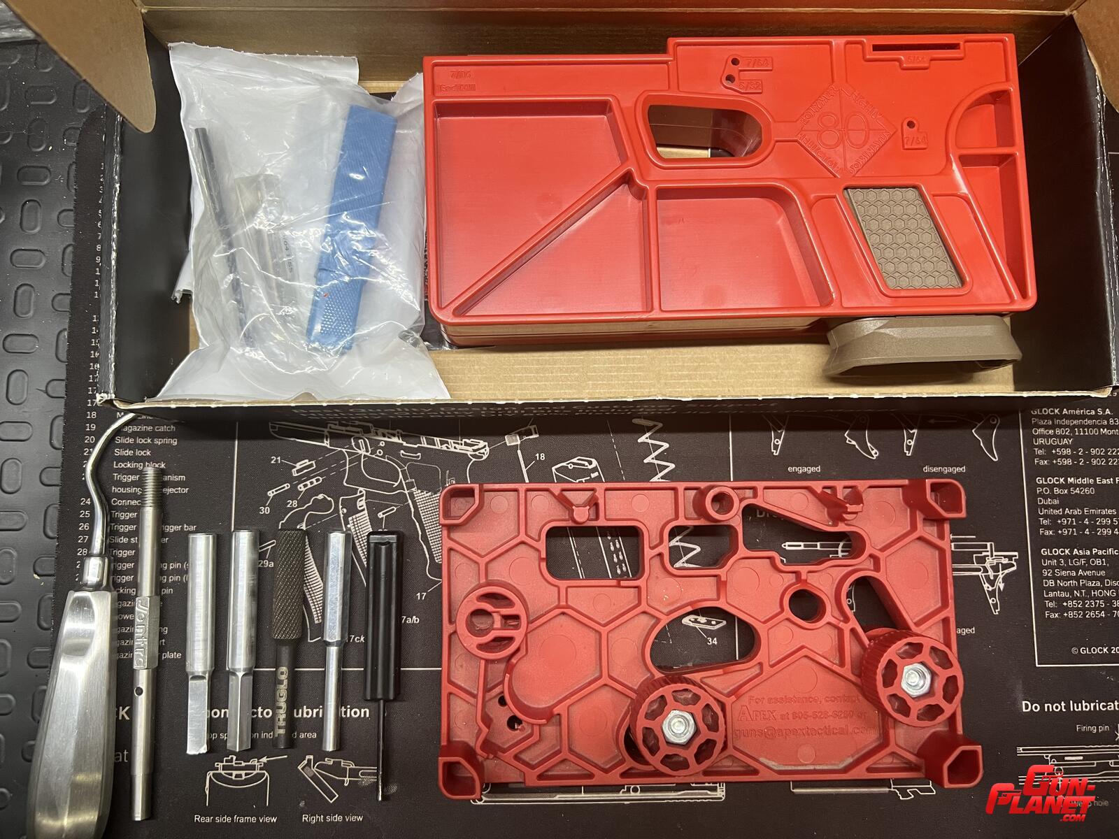 Su banco de trabajo se sentirá vacío sin uno de estos. El Apex Armorer's Block está diseñado para armeros profesionales, armeros militares y encargados de hacer cumplir la ley, y armeros caseros para que trabajen en una variedad de modelos de pistolas Smith & Wesson y Glock . Funciona junto con la bandeja del armero de Apex. Algunas razones por las que necesita esta herramienta indispensable: