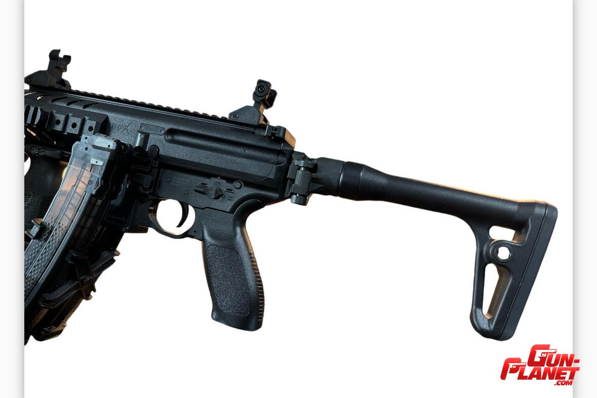 >> Esta es plegable fija , pero fíjate ambiéntale tenemos telescópica de sig Sauer para MPX que es extensible en tres posiciones .