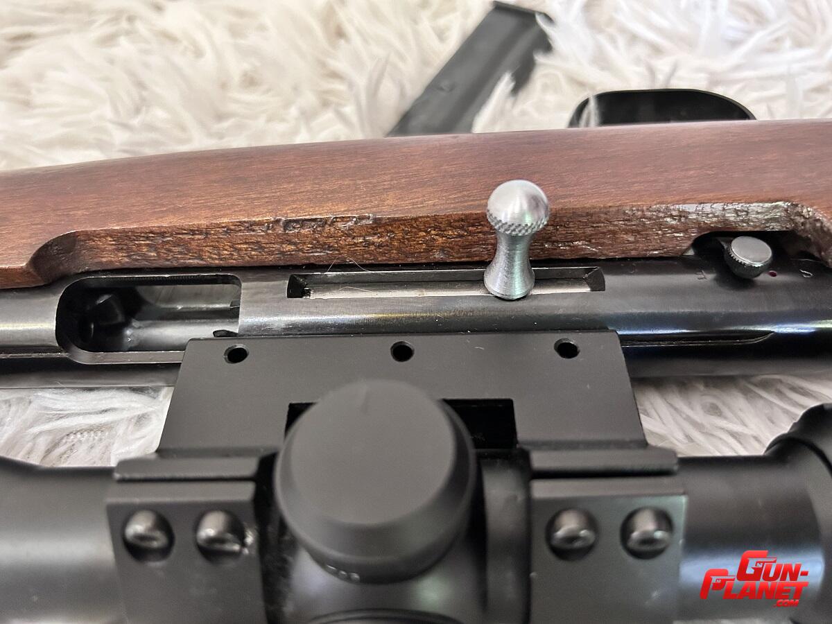La culata del modelo JW14 está hecha de madera y tiene un acabado satinado. La carabina tiene un cargador de 5 cartuchos y un seguro manual. El gatillo es ajustable y tiene una fuerza de disparo de aproximadamente 4 libras (1.8 kg).