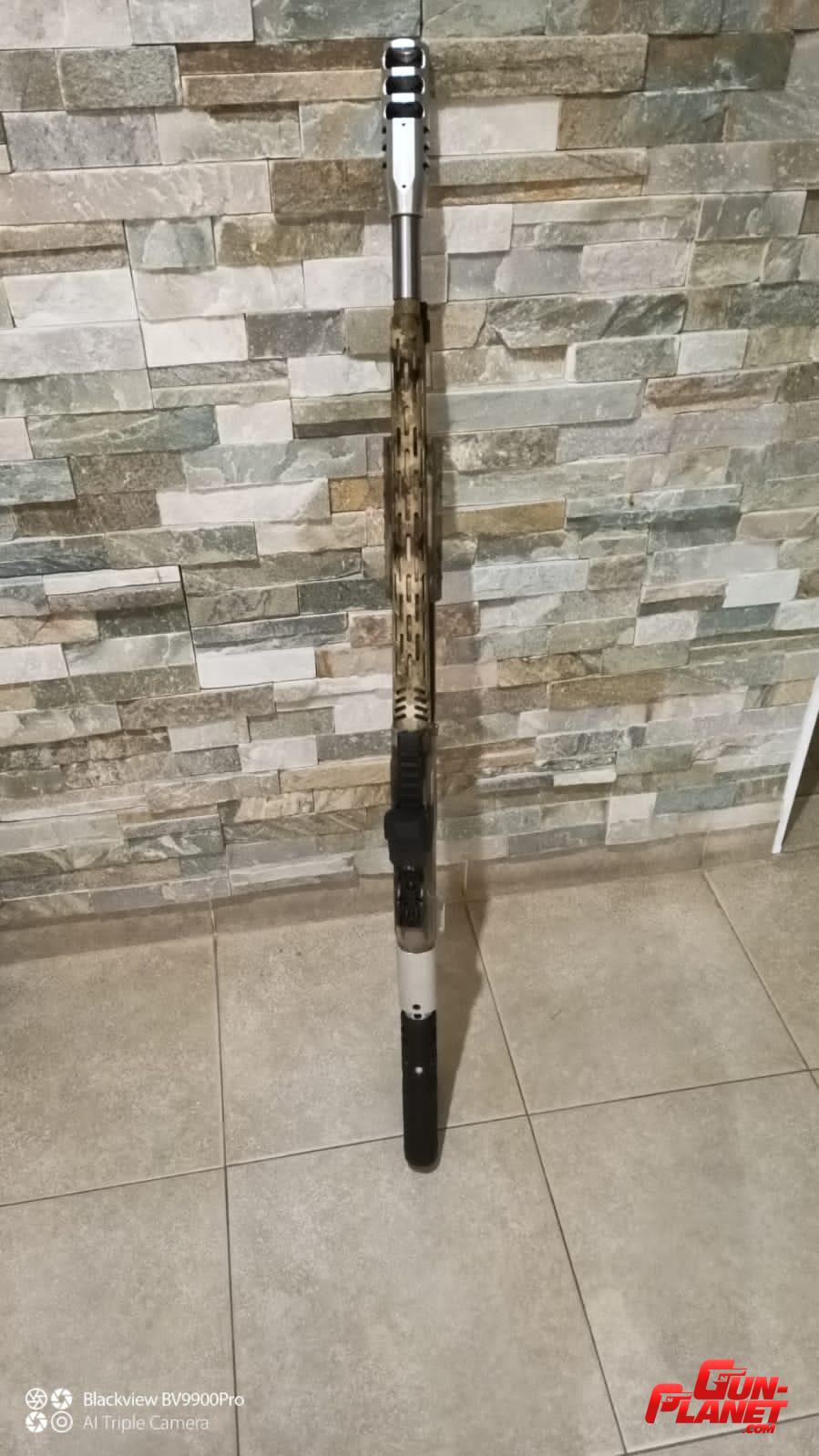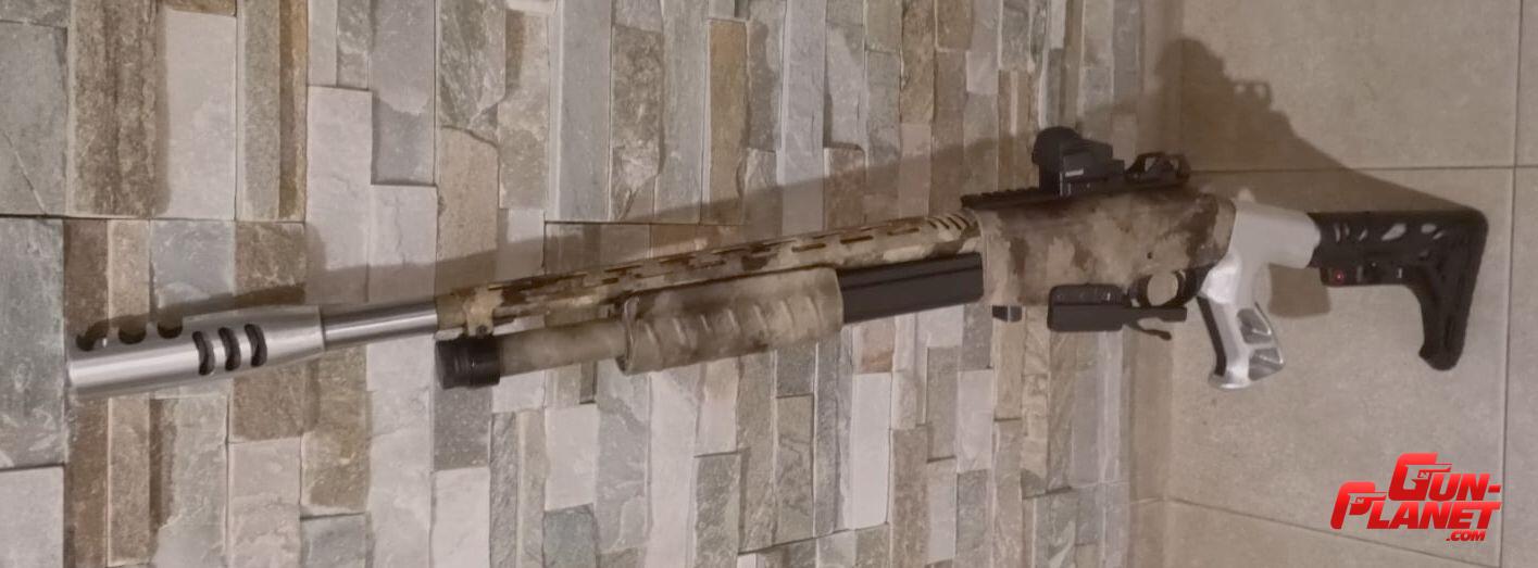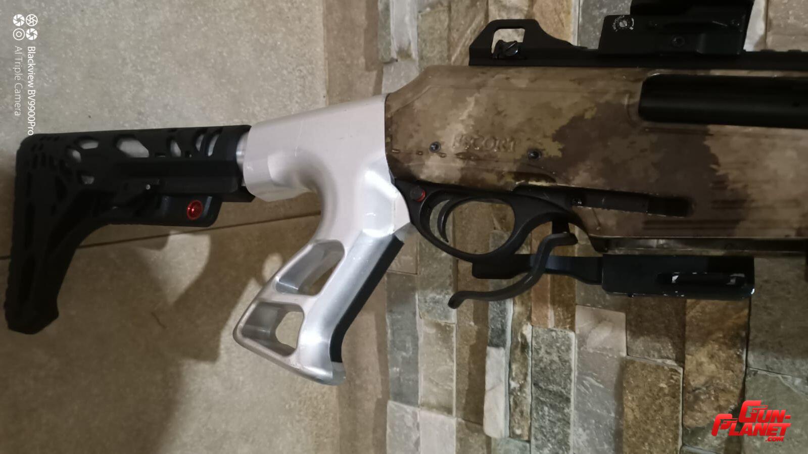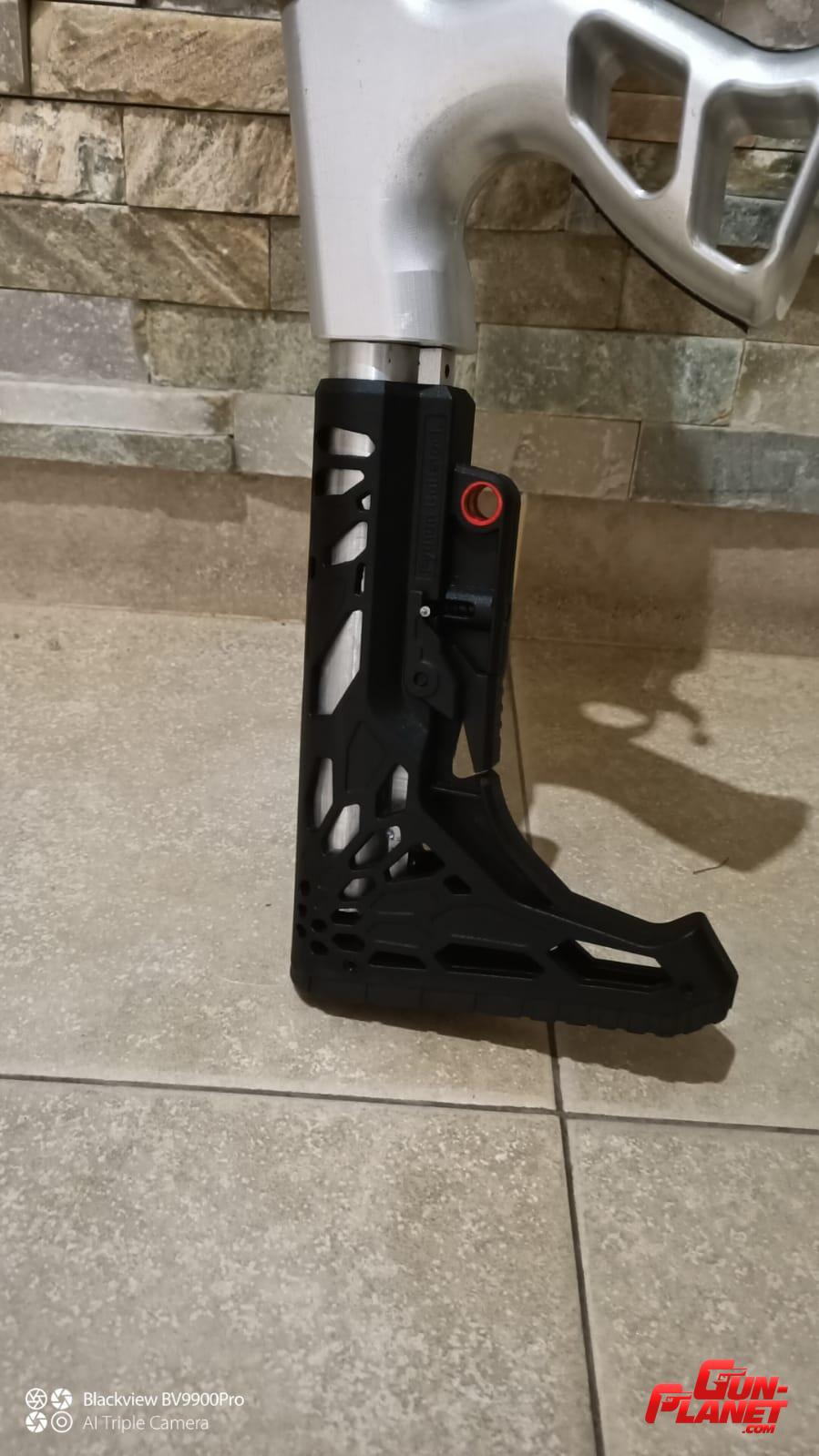 Pistol grip de aluminio hecho a medida, con buffer tube, y culata tipo AR.