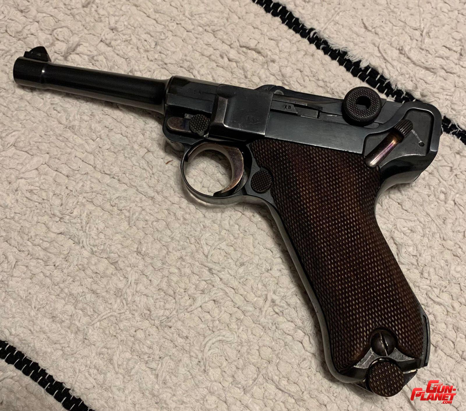 >> Buenas tardes, a simple vista tiene el numero en el armazón, en la parte superior de la pistola está el año 1915 y la marca DWM. Perdón pero no se a que te referís con el cuño.