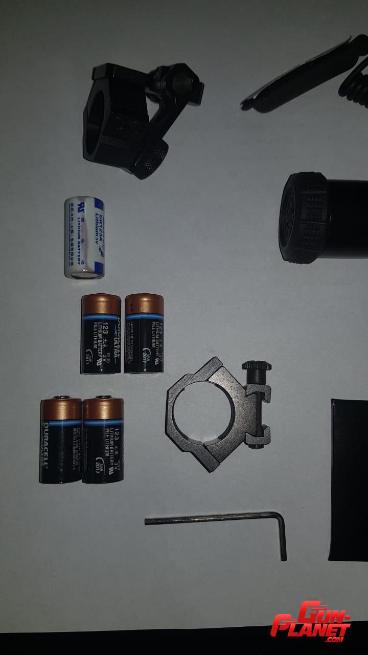 Incluye montaje para acoplar a mira de 30 mm de tubo. Montaje Weaver. Montaje para prismatico.Switch para encendido a distancia y estuche