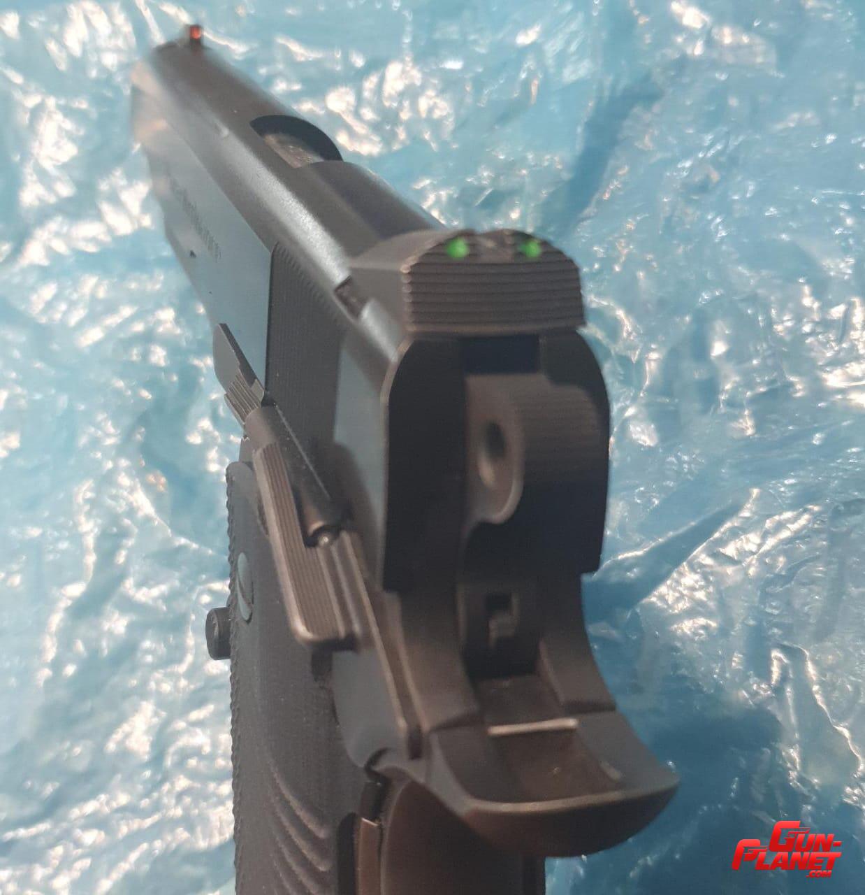 hola, te puedo consultar por que tipo de miras tiene puestas la pistola. gracias y saludos
