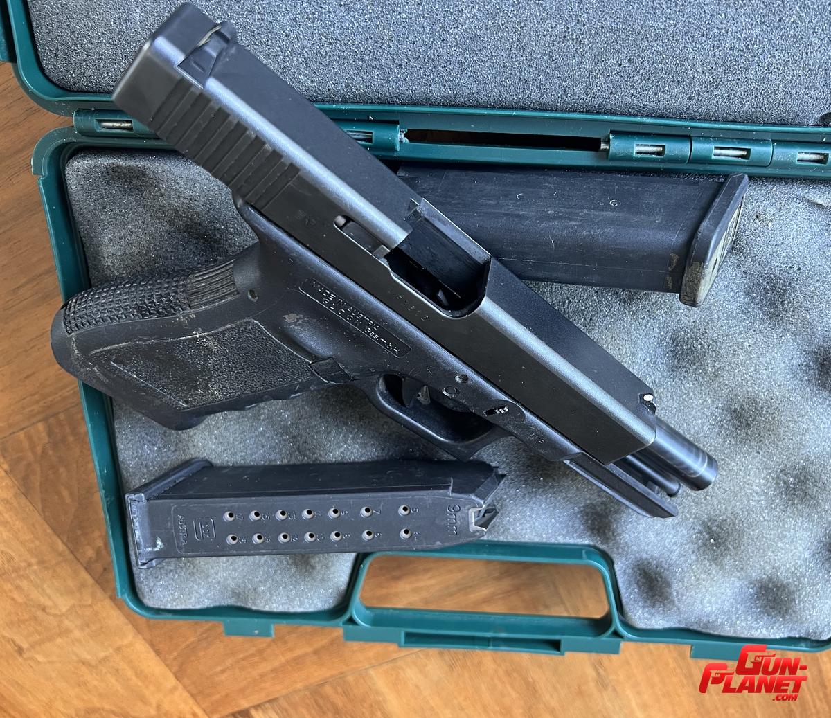 Pistola con uso pero en perfecto estado, tenia una lija pegada en la empuñadura que no se limpio perfectamente pero la mancha no es permantente,