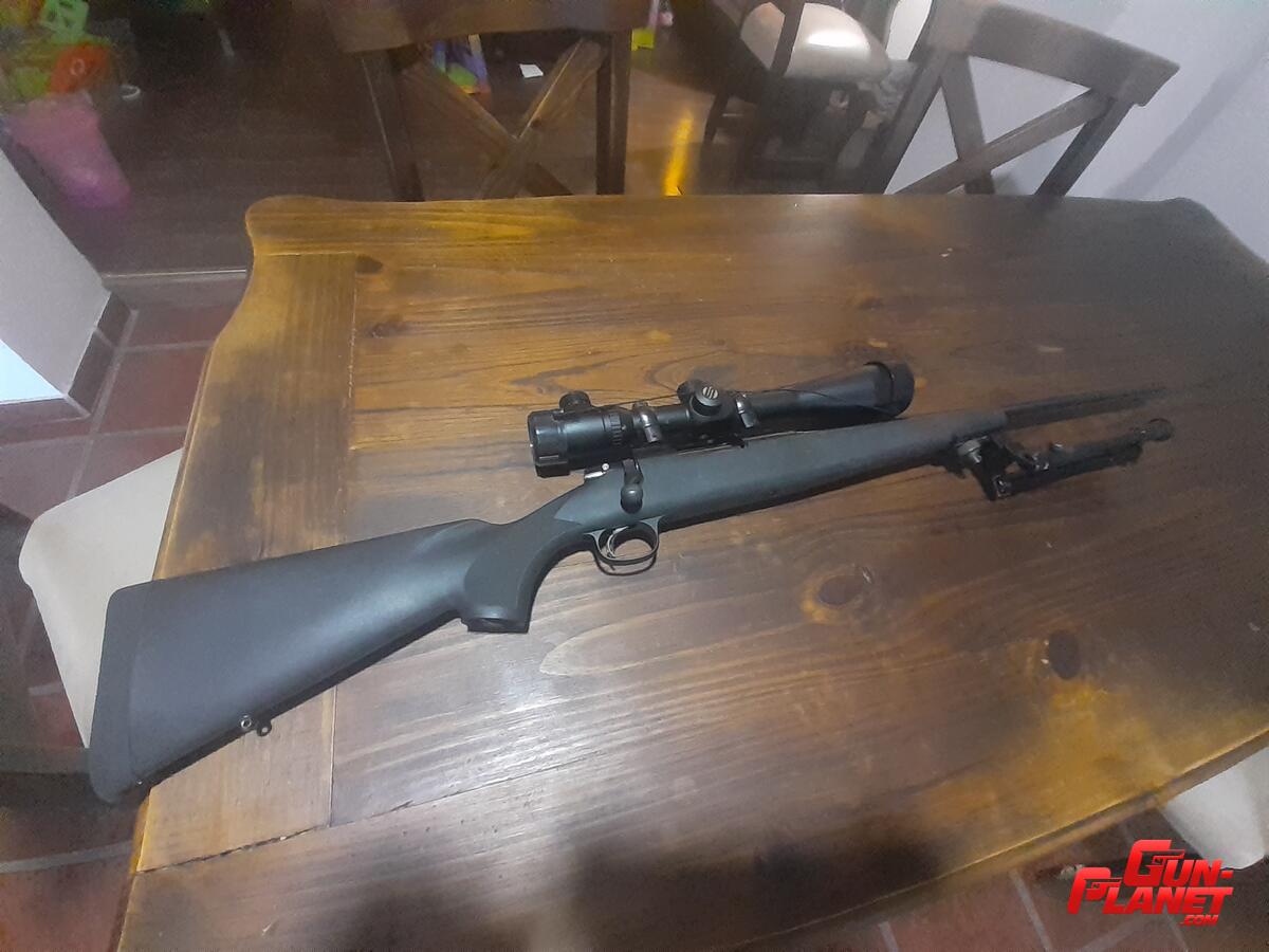 Marlin 308. Pavón, sintético, bipode utg. Mira shilba variable 6-24 x 50 reticulo mil dot iluminado, corrector de paralaje. Impecable estado. Recibo revolver 357 mag o 44 mag 4".