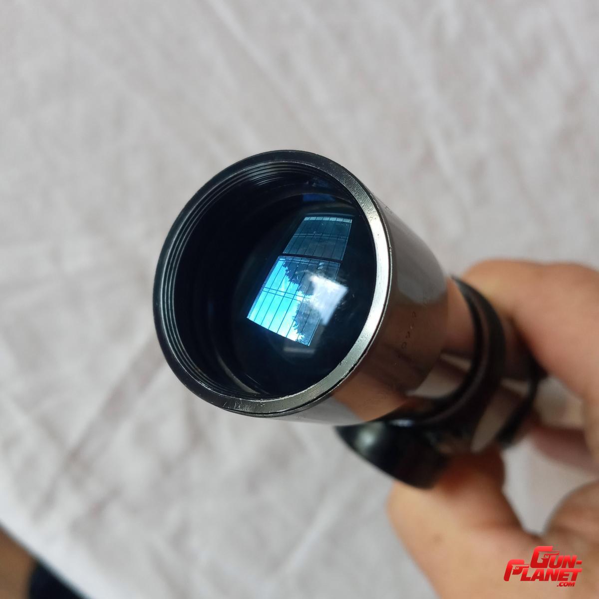 El ocular tiene en el lente una marca de 2mm en uso pasa desapercibido, si se busca al poner sobre un fondo blanco se puede percibir como si fuese un pelo. Mas alla de eso el estado es exelente. sin marcas y el iluminador funciona perfecto. Raro item hecho en los 80/90 por hakko para thompson center.