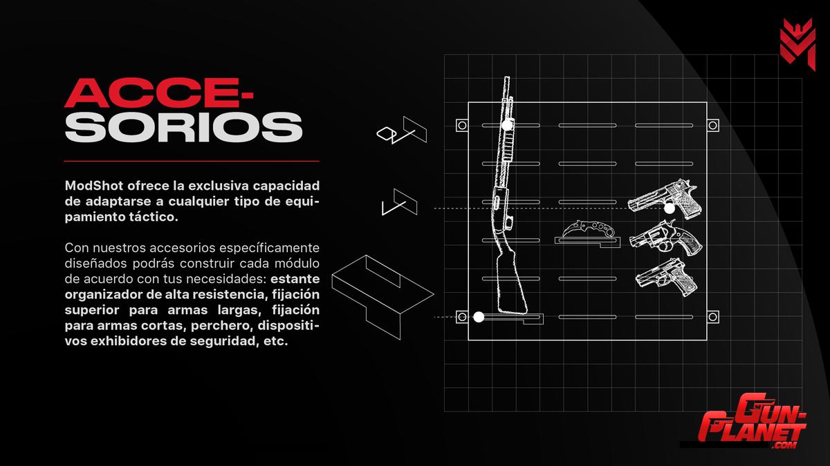 ModShot es más que solo organización; se trata de la experiencia de tener tu pasión a la vista y de manera segura. Está hecho por tiradores para tiradores, y entendemos tus necesidades y deseos. Nuestra estructura modular, personalizable y fácil de instalar se adapta a ti.