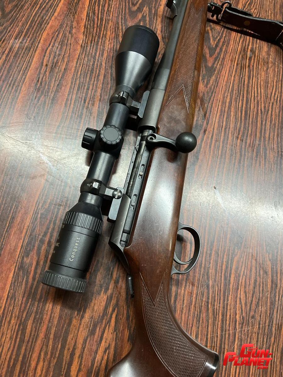 >> Bolt-action rifle chambered for .270 Win., 7x64, .308 or .30-06 cartridge. Fitted with a 22" loading magazine. Receiver drilled and tapped. Checkered walnut stock. No sights. Weight about 6.65 lbs